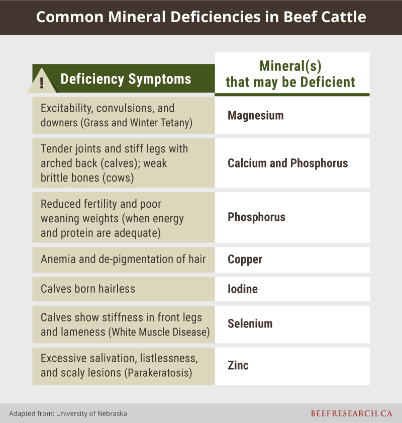 Common mineral deficiencies in beef cattle