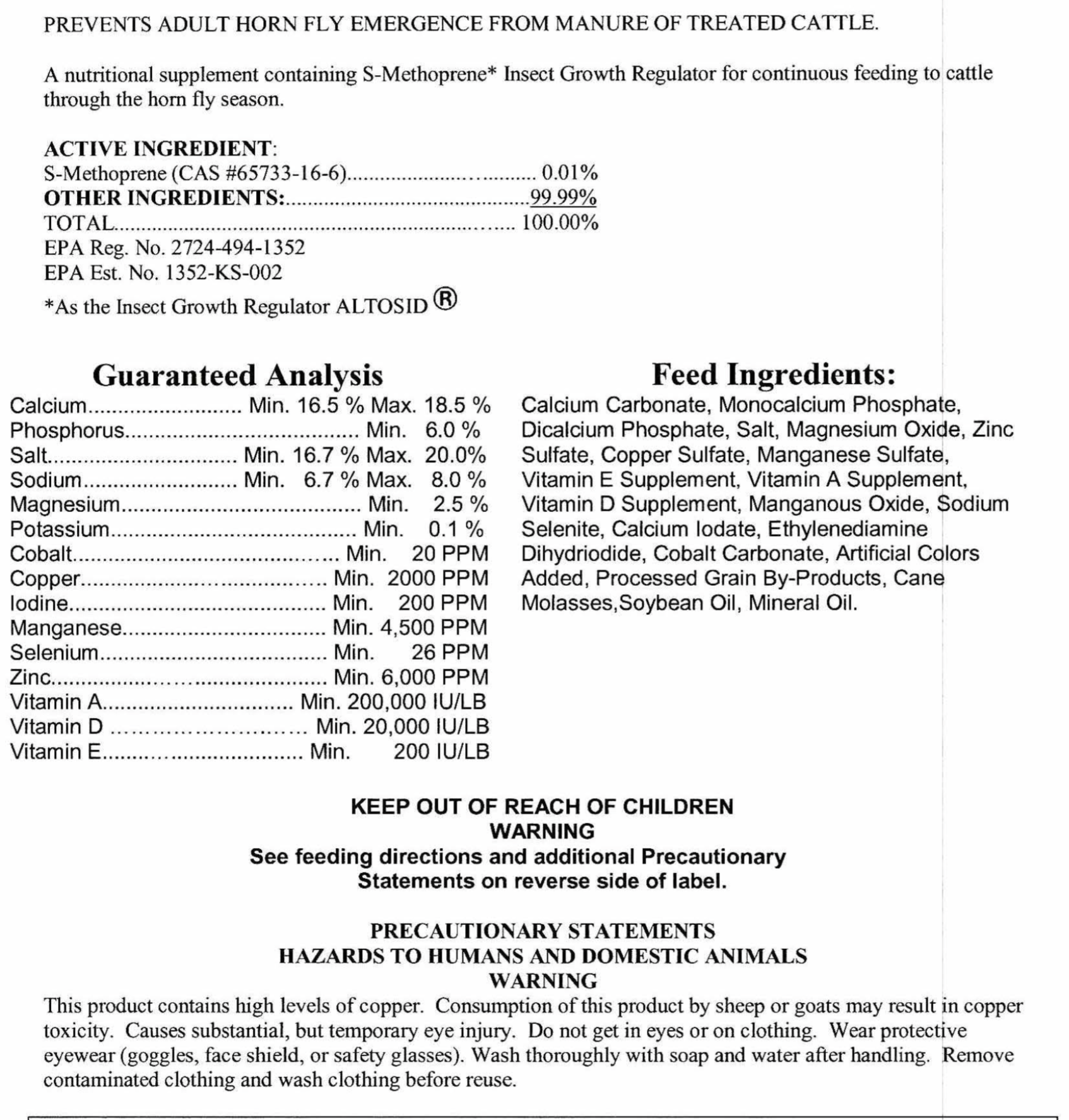 The following label contains the breakdown of a loose mineral that would be considered a 3:1 calcium to phosphorus ratio and may be used by producers feeding cereal greenfeed forages.